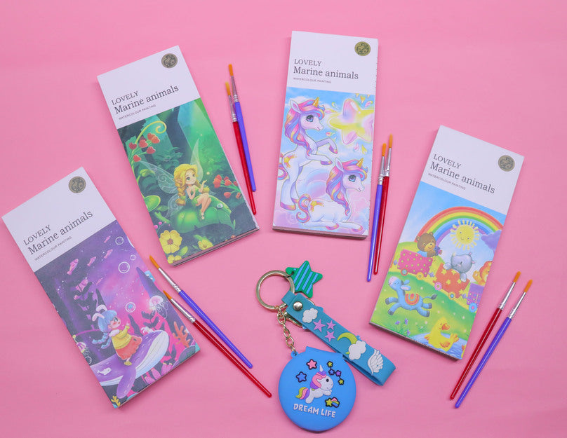 - This painting book features sturdy special paper, a plastic pen, and natural plant-based water-colors, ensuring safety and eco-friendliness.