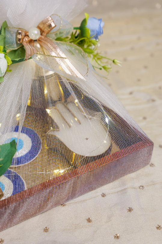 - Wooden Tray Base – Strong and elegant tray, beautifully arranged for gifting.