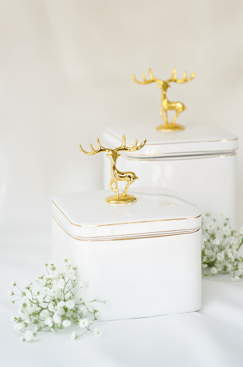 Golden Deer Ceramic Jar