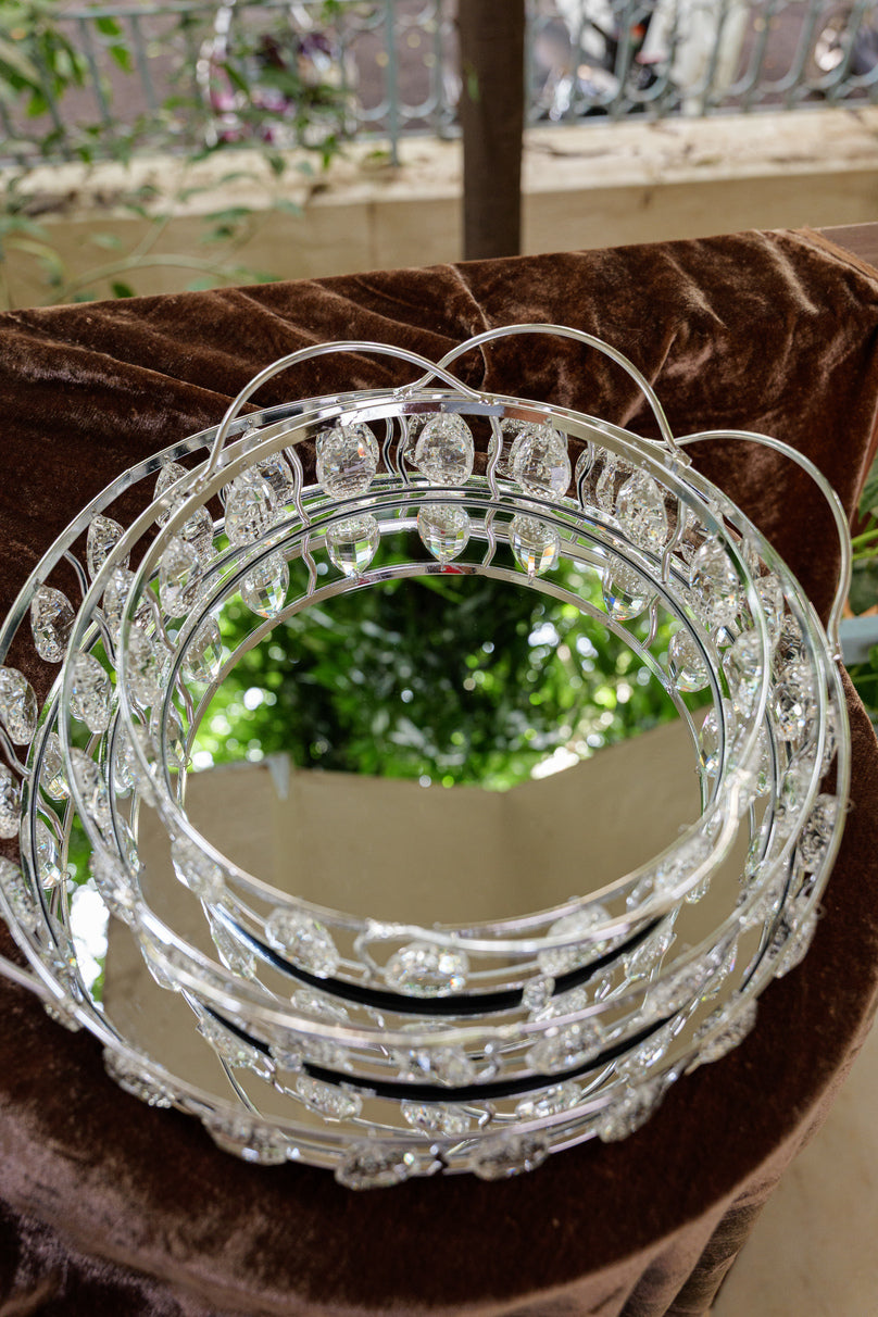 Silver Crystal Round Mirror Serving Tray